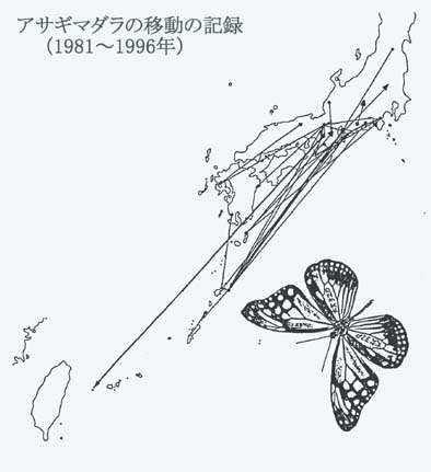 日本にも定着している青斑蝶(アサギマダラ Palantica sita)は、多くの迷蝶がいわば片道キップの旅行者であるのに対し、春の北上、秋の南下と往復の長距離移動をしています。このことは1980年から始めているmarking調査によって明らかになりましたが、台湾の方々のご協力がなければ解決できない問題が山積していることにも気付きました。もちろん台湾での若干の予備調査もやってみましたが、まだほとんと何も分かっていません。やはりそこに住み着いている人でなければ、成果は挙げられないようです。