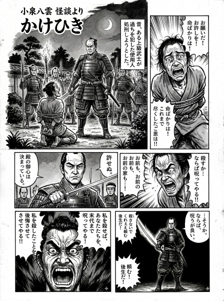 以下の状況を説明する、縦長で一ページの日本の漫画を描け。