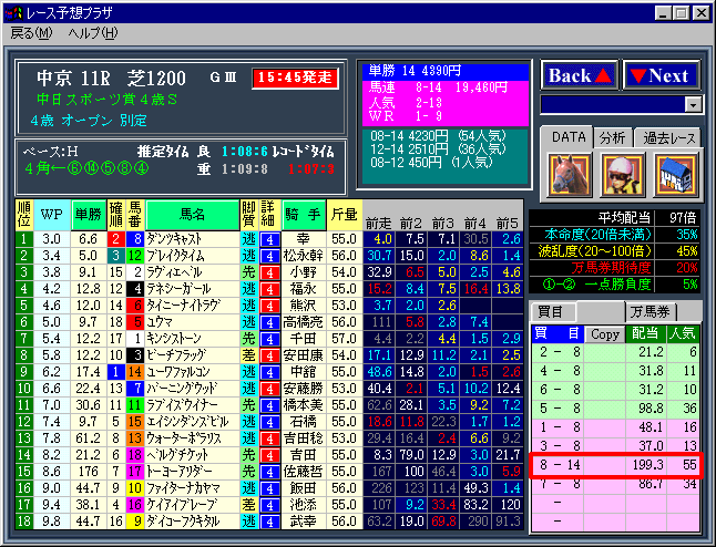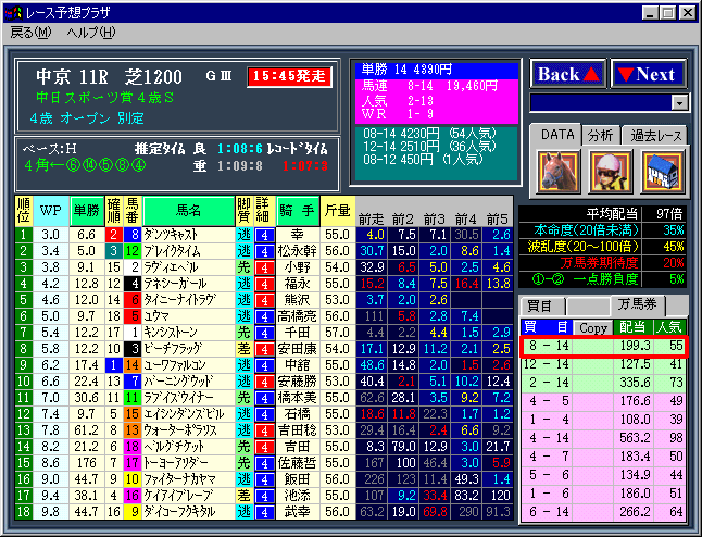 ↓ 画面はウイニングアイ2000のものです。