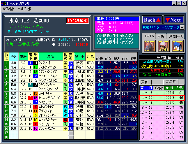 ↓ 画面はウイニングアイ2000のものです。
