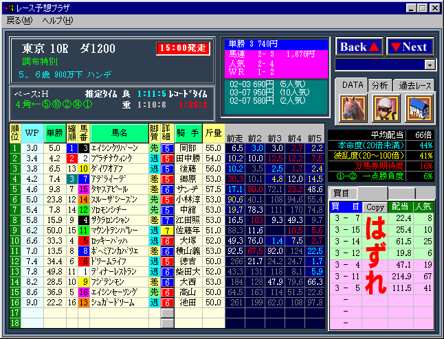 | そこで、ウイニングアイ2000は、完全に穴馬券に特化しました。 |
