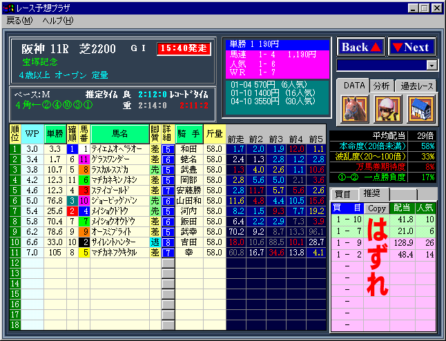 ウイニングアイの持味はというと、万馬券を含めた穴馬券を人より多く獲ることにあると思います。 |