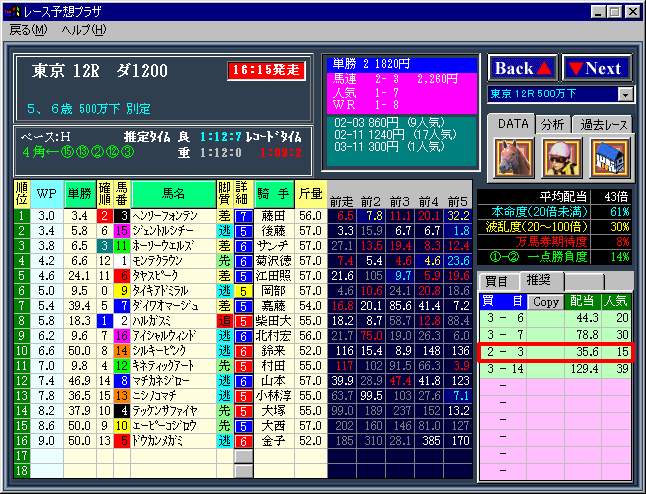 | また、ウイニングアイを利用されて、一度は、他の予想法に乗換えてみたものの、再び戻ってきてくれるユーザーがいることも、うれしいことです。 |