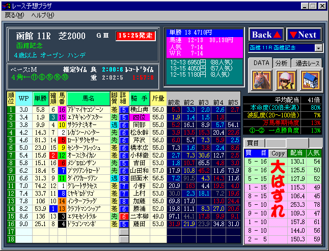 | 過去3年連続万馬券的中の函館記念ですが、今年は完敗に終わりました。 |
