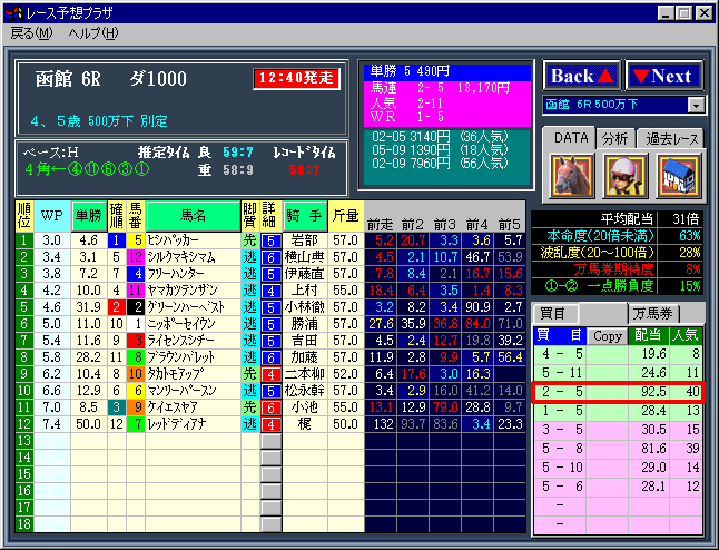 | 次の函館6レースは、高額配当馬券としては最も獲りやすいパターンです。 |
